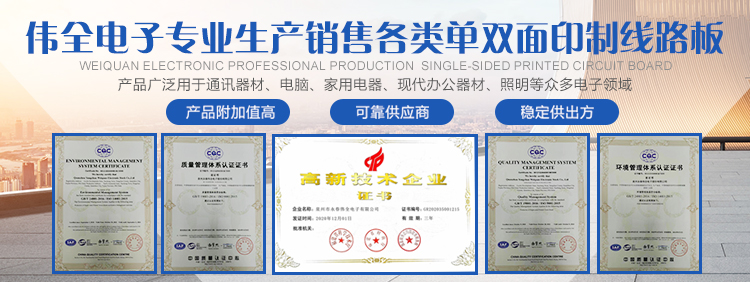 泉州永春偉全電子股份有限公司是一家合資企業(yè)。創(chuàng)辦于2011年,專業(yè)生產(chǎn)各類單面印制線路板,是福建省專業(yè)生產(chǎn)印制線路板的主要廠家,公司坐落在泉州市永春縣桃城鎮(zhèn)留安開發(fā)區(qū)添福工業(yè)園,占地面積達(dá)10多畝,交通方便。公司現(xiàn)有員工80多人,總投資3000多萬元人民幣,年生產(chǎn)能力逾20萬平方米。